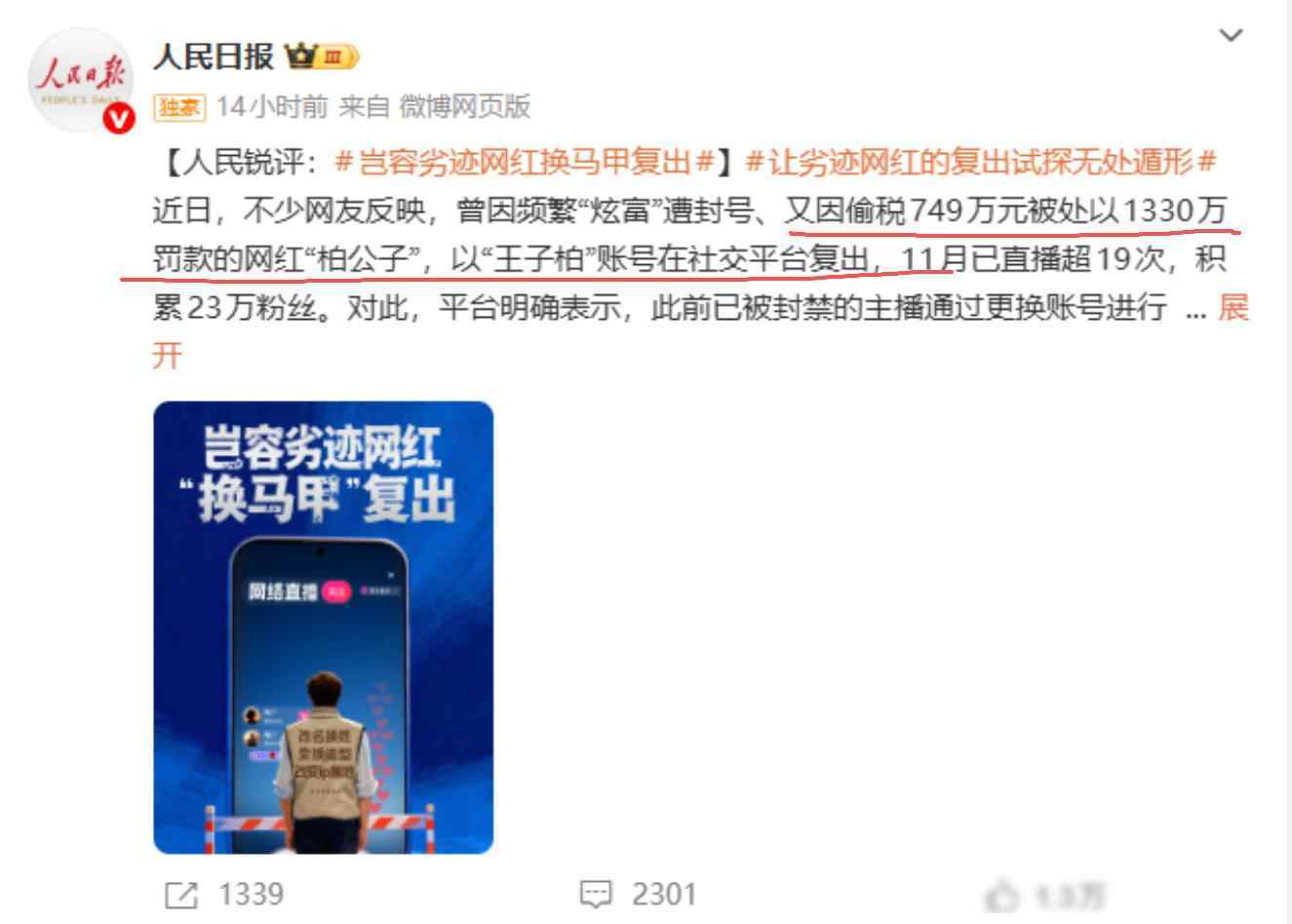 有网友就问了,像柏公子这种“劣迹网红”,为啥还能卷土重来?说到底,还是网络监管存在不小的漏洞。互联网时代,账号换马甲、内容换包装太容易了。