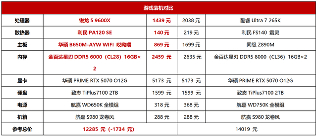 此外,从我们列出的两套装机配置的对比来看,在内存和SSD大涨的情况下,锐龙5 9600X平台得益于平台性价比更优与更低的供电需求,整机价格相对于酷睿Ultra 7 265K有高达1734元的优势,可以说是真正的完胜了。因此,对于目前想组装主流网游电脑的玩家来讲,“好钢都用在刀刃上”的锐龙5 9600X明显更加值得选择。返回搜狐,查看更多