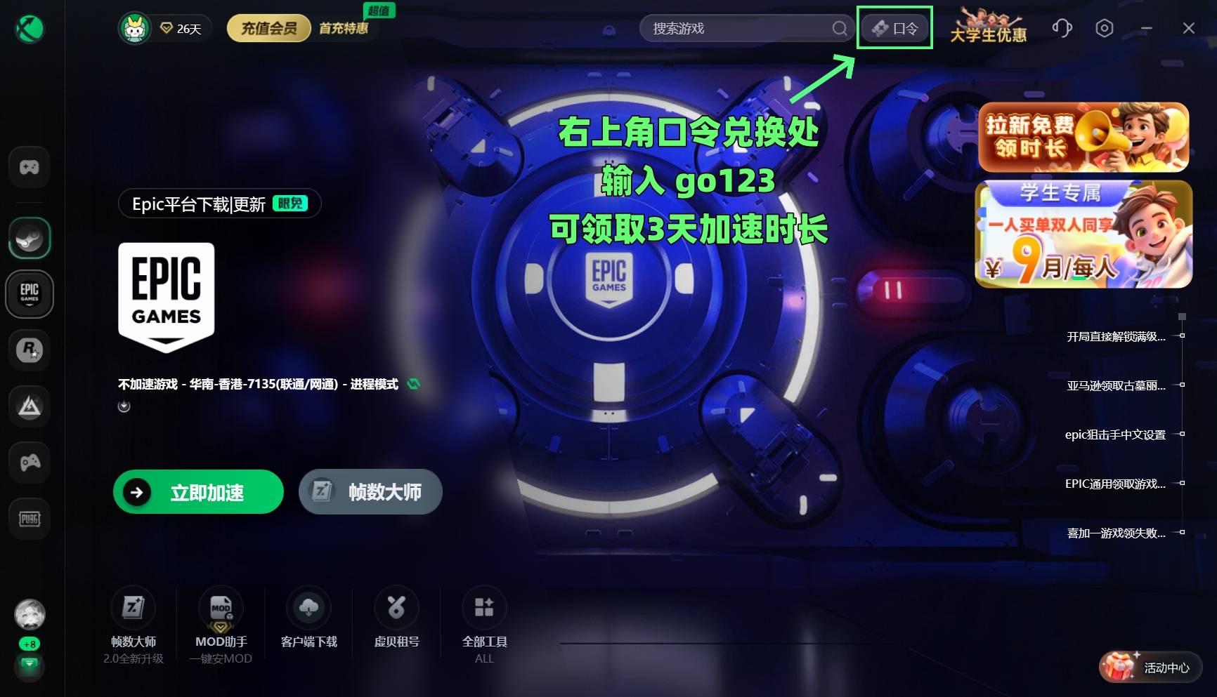 由于epic是一款海外的游戏平台,直接进入可能导致网络报错或者无法加载等问题,因此推荐大家使用迅游加速器对epic进行加速即可,帮助大家顺利进入epic游戏平台并领取心仪游戏。