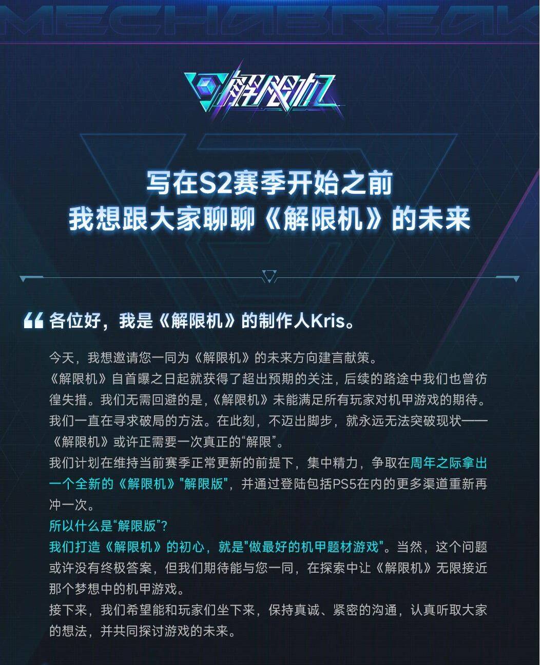如果真是这样,那这次卸任反而是好事,以后他不用再看财报脸色,也不用操心KPI,只需要窝在工作室里琢磨游戏怎么改,怎么把《解限机》从泥潭里拉出来,他甚至还和玩家约定过“一年之约”,承诺要做出《解限机》的“解限版”。