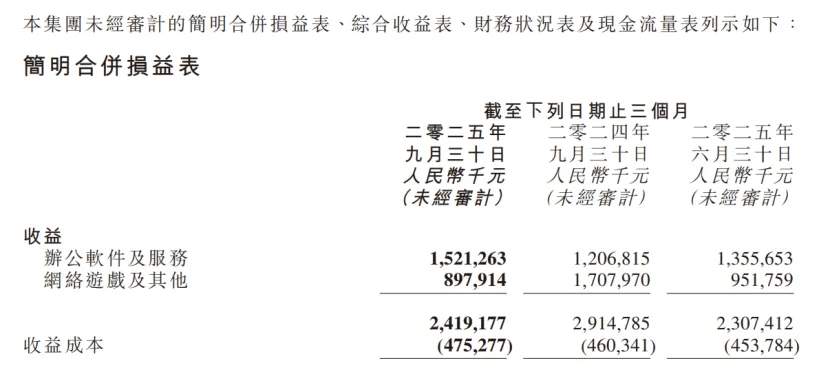 如果再结合金山软件发布的2025年第三季度财报来看,压力其实比外界想象的要大得多,财报显示,公司当季总营收24.19亿元,同比下降17%;母公司应占净利润2.13亿元,同比几乎腰斩,下滑48%。其中,网络游戏及其他业务收入8.98亿元,同比下降47%,环比也降了6%。